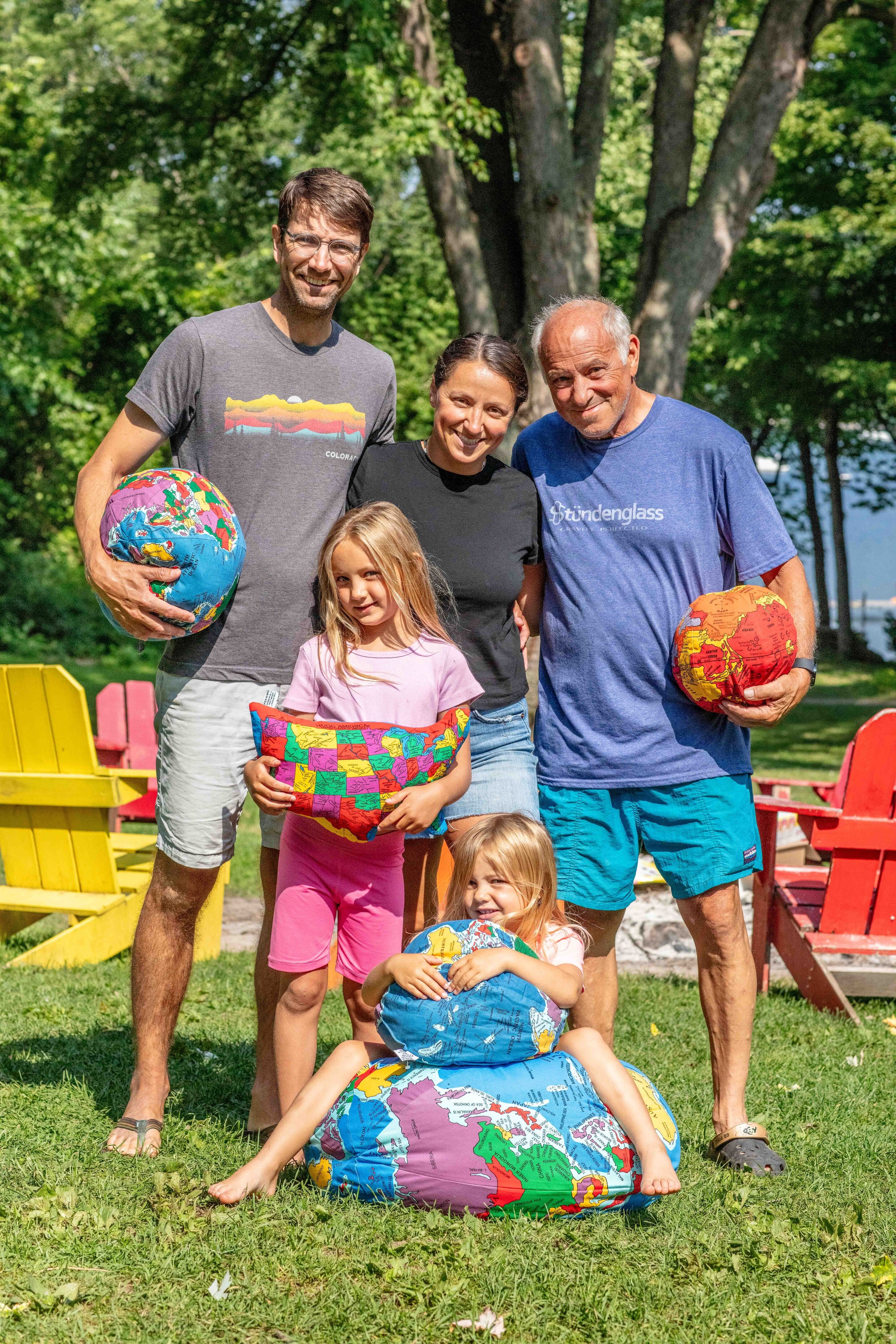 Pictured here are Hugg-A-Planet's Founder, Robert, his daughter Steph (all grown up from the picture above), her husband Jud, and their young family on Lake Champlain, Vermont.